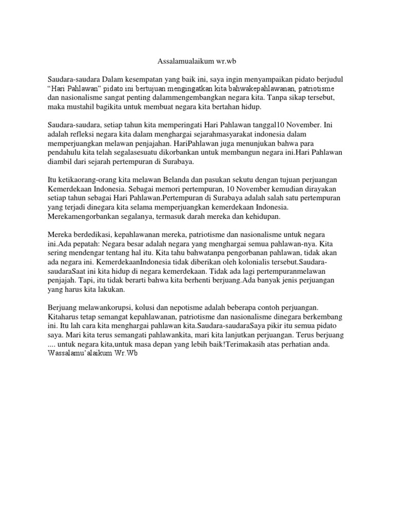 Contoh Pidato Tentang Hari Pahlawan (Terbaru) - Penulis Cilik