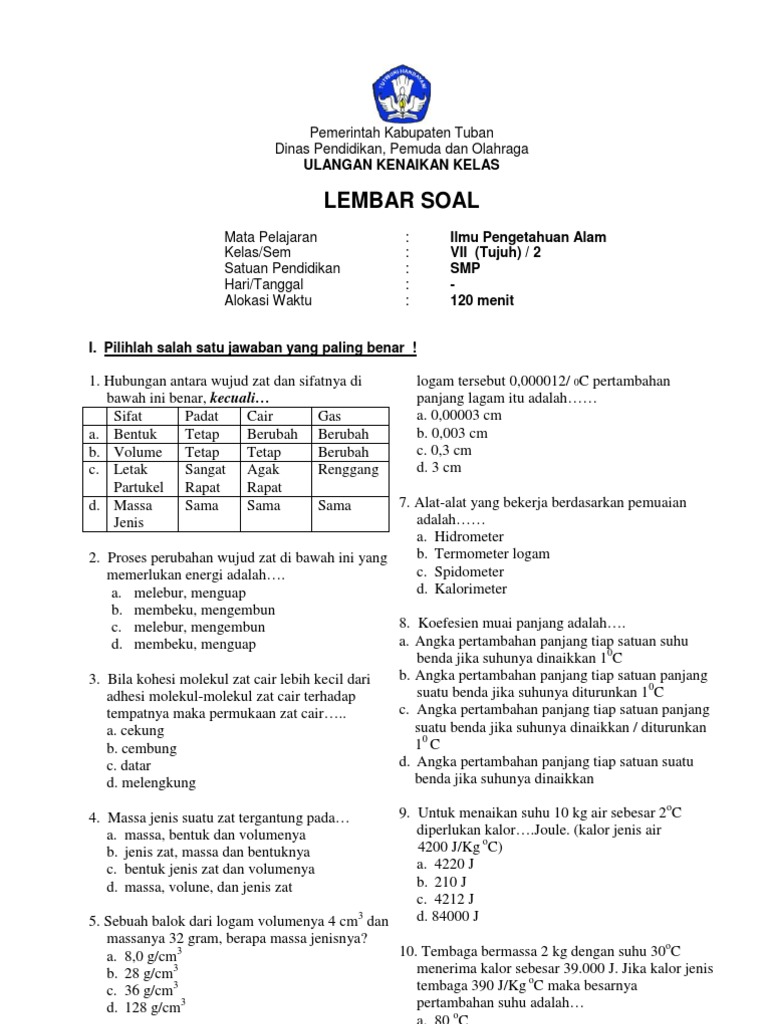 Soal perubahan fisika dan kimia kelas 7 kurikulum 2013 edisi …