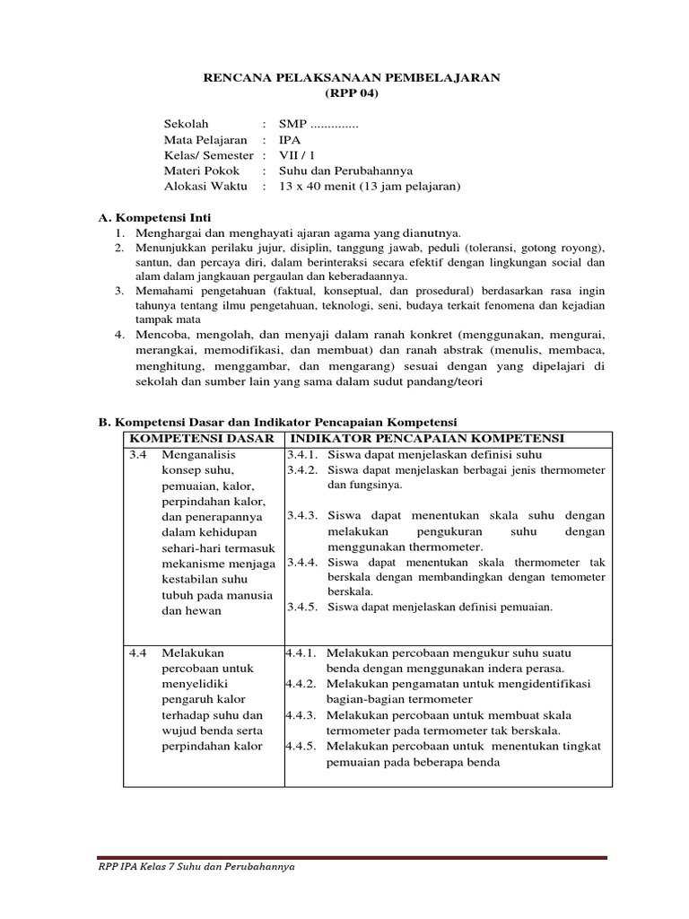 PDF) Contoh RPP kelas VII SMP kurikulum 2013 Suhu dan Perubahannya …