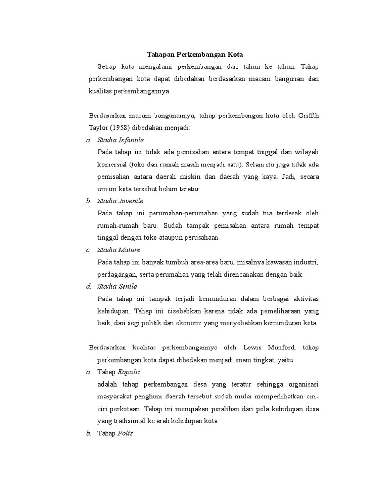 Jelaskan tahap perkembangan kota menurut Lewis Mumford! - Brainly.co.id